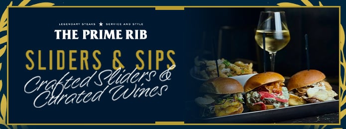 The Prime Rib® invites you to celebrate the season with our signature summer pairing—an inspired trio of hand-crafted sliders matched with a bold pour of wine. Available daily in the Bar & Lounge for a limited time.