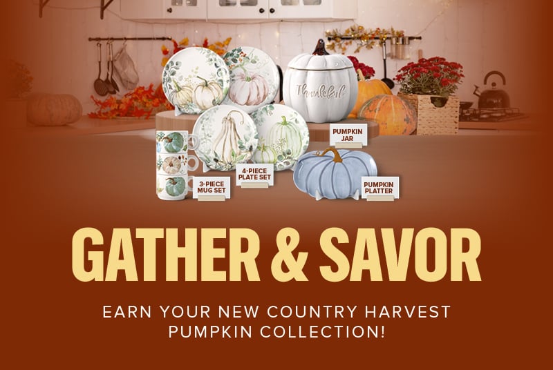 Tuesdays in October: Earn for your new Country Harvest Pumpkin Collection!